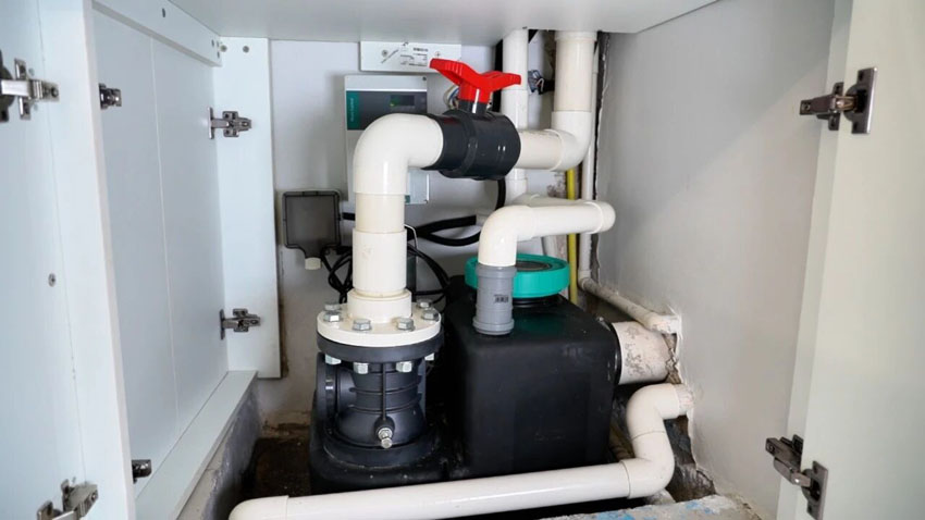 更值得一提的是其人性化维护体验:透明集水箱盖支持直观观察内部状态,止回阀独特的专利顶丝设计,可以在维护时有效泄放排水管中的污水,避免脏乱臭的污水喷溅。大幅降低后期运维成本。
